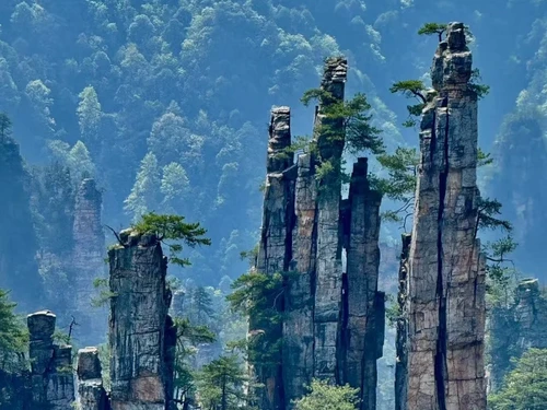아침 식사 후, 창사를 떠나 장가계 국가삼림공원으로 향했습니다. 장가계는 3천 개의 독특한 봉우리와 800개의 에메랄드빛 시냇물이 흐르는 곳으로, 세계적으로도 매우 희귀한 사암 봉우리 삼림 지형을 자랑합니다.