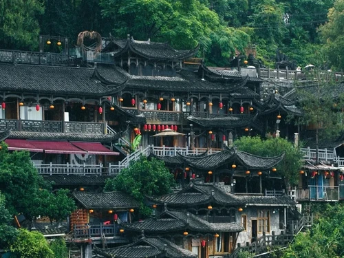 장가계에 위치한 72층 높이의 이 건물은 높이 109.9m로 세계에서 가장 높은 목조 건물입니다. 투자족 건축 양식을 주로 특징으로 하며, 아름다운 조명 쇼, 무형문화유산 체험, 그리고 지역 특산 음식을 자랑합니다.