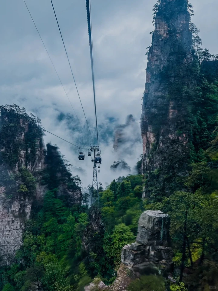 천문산 케이블카는 세계에서 가장 긴 산악 관광 여객 케이블카로, 총 길이 7,455m, 고저차 1,279m, 편도 약 28분이 소요됩니다. 중간역에서 위쪽역까지의 경사도는 38.6°로, 길을 따라 도시와 전원 풍경, 기이한 봉우리들을 한눈에 내려다보며 웅장한 풍경을 감상할 수 있습니다.