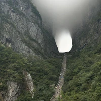 천문산 풍경구에서 출발하여 1,000m 높이의 절벽을 가르는 천문동을 감상할 수 있습니다. 케이블카를 타고 주변 봉우리와 깊은 계곡의 탁 트인 전망을 감상할 수도 있습니다.